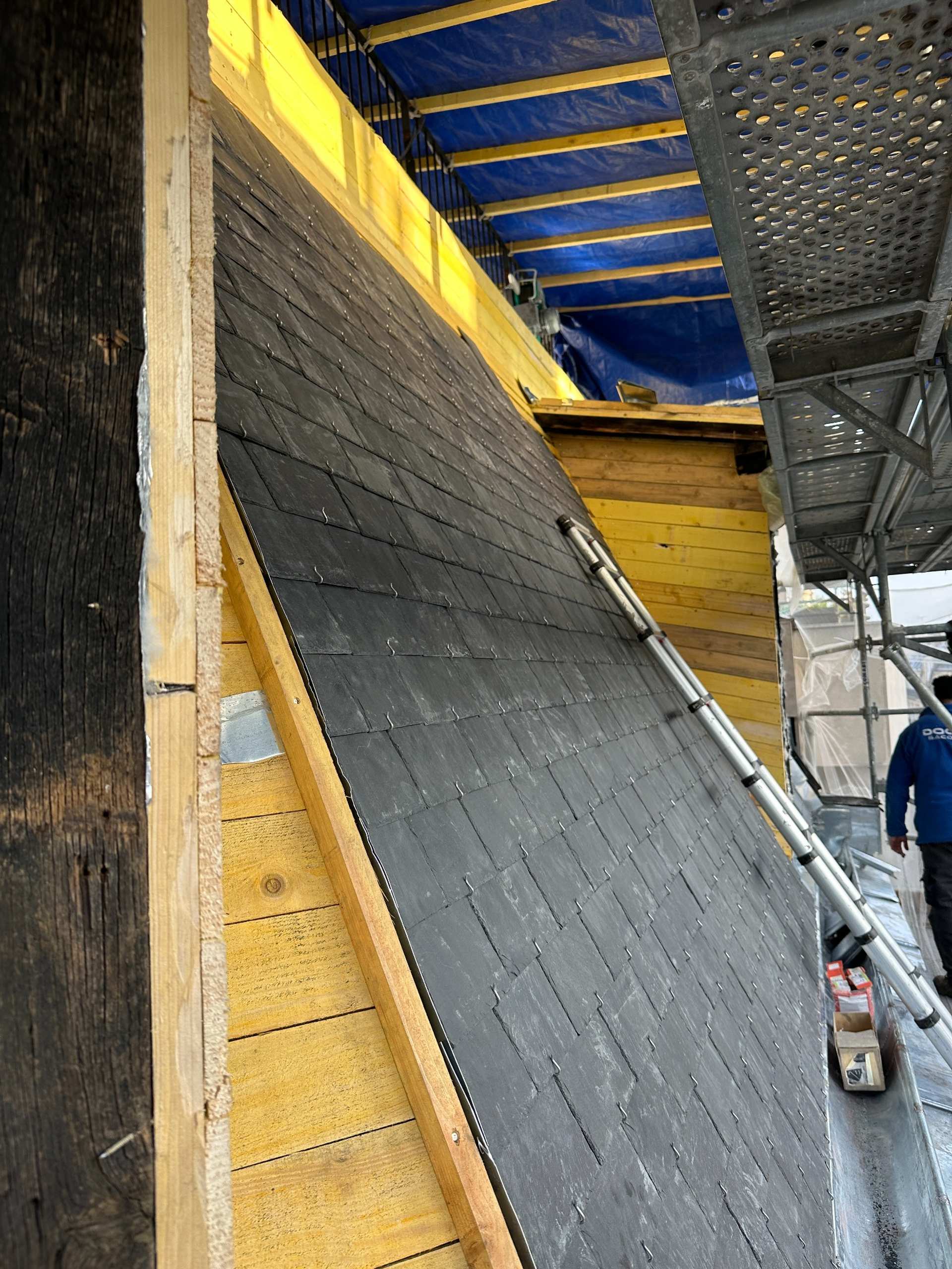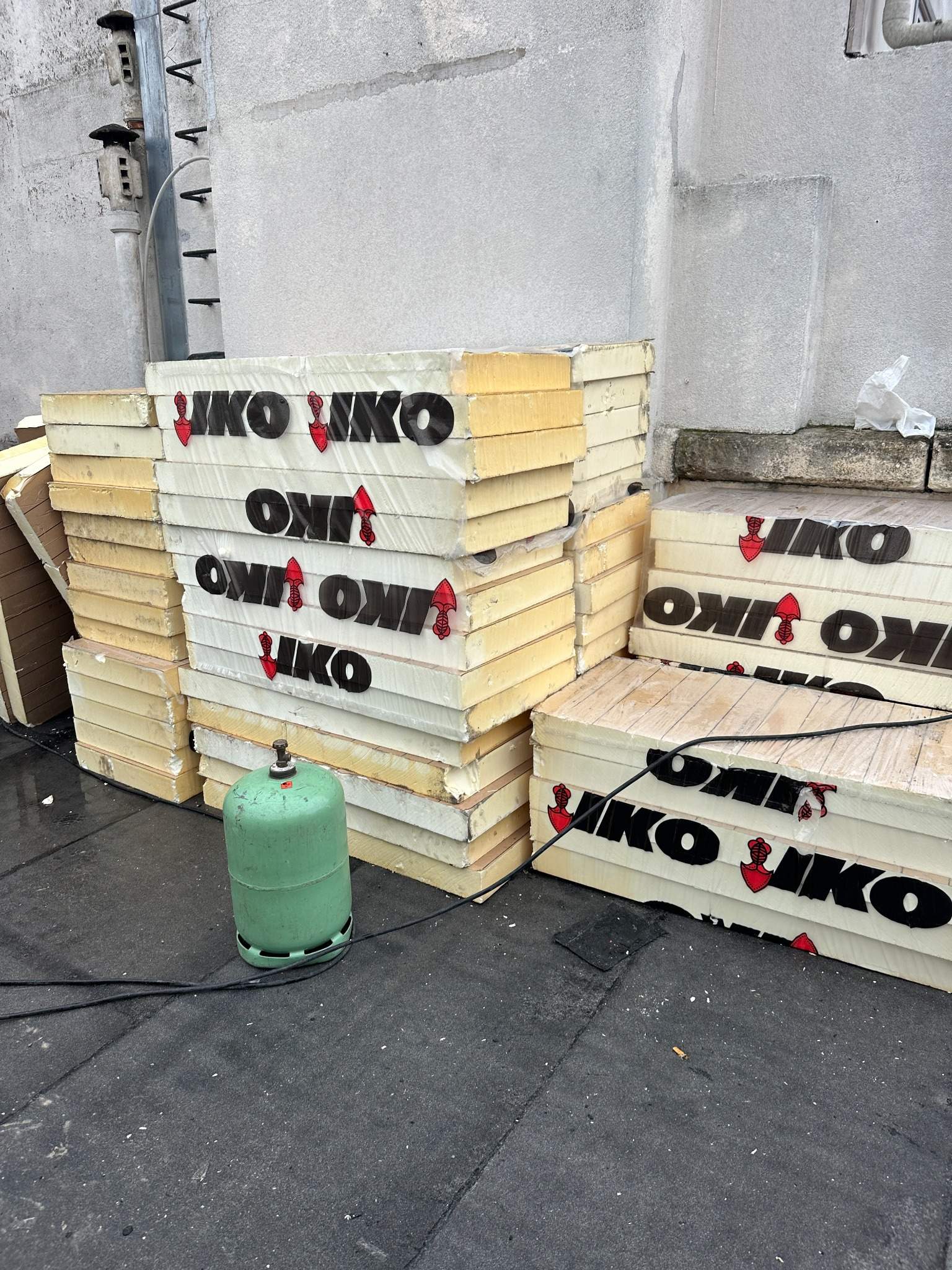 La mission a débuté par la mise en place d’un échafaudage complet en périphérie, garantissant un accès sécurisé à l’ensemble de la toiture. Le chantier a ensuite impliqué la dépose de l’ancienne couverture, suivie de la pose d’un complexe isolant en polyuréthane de marque IKO, optimisant ainsi les performances thermiques du bâtiment.