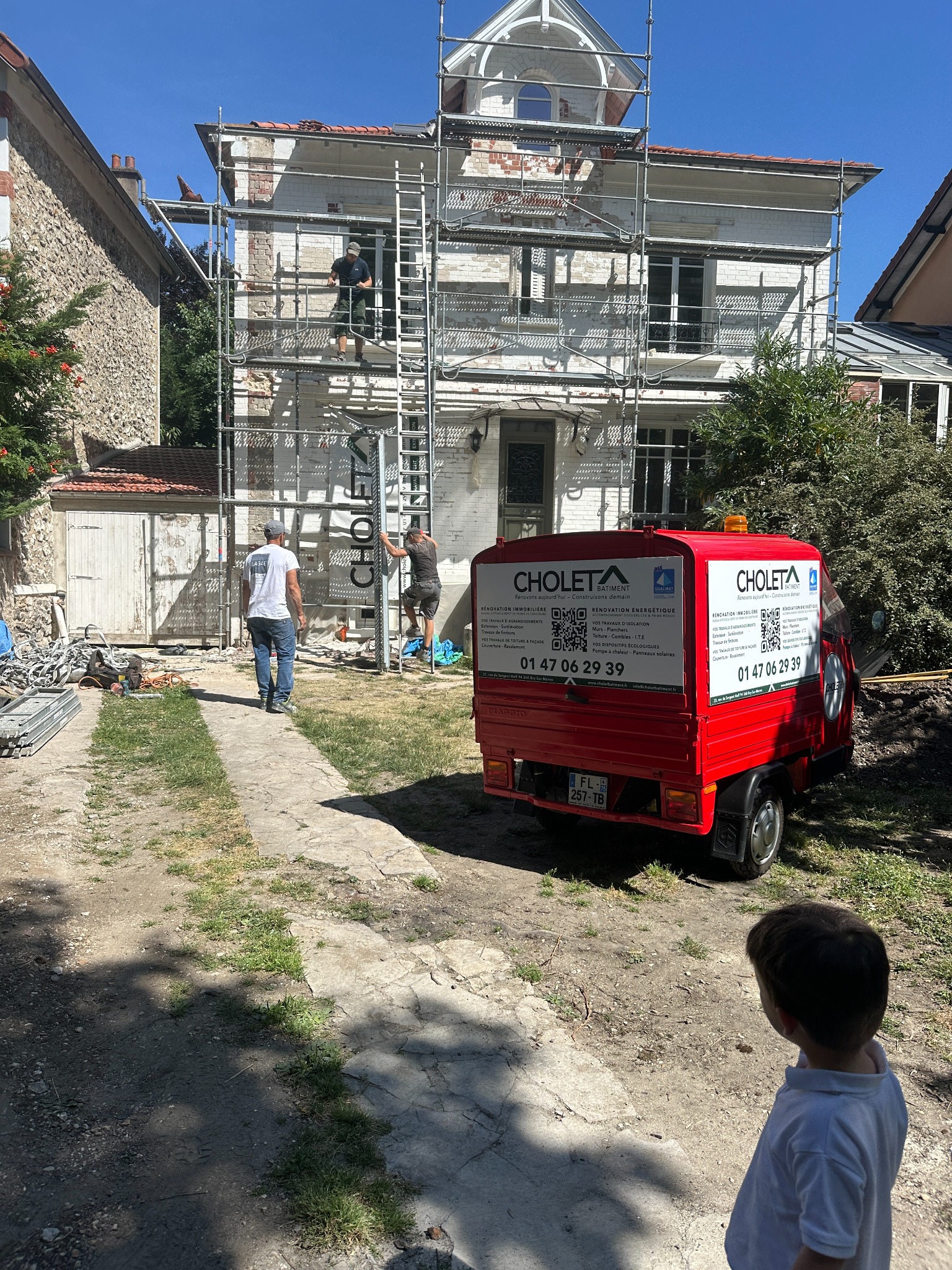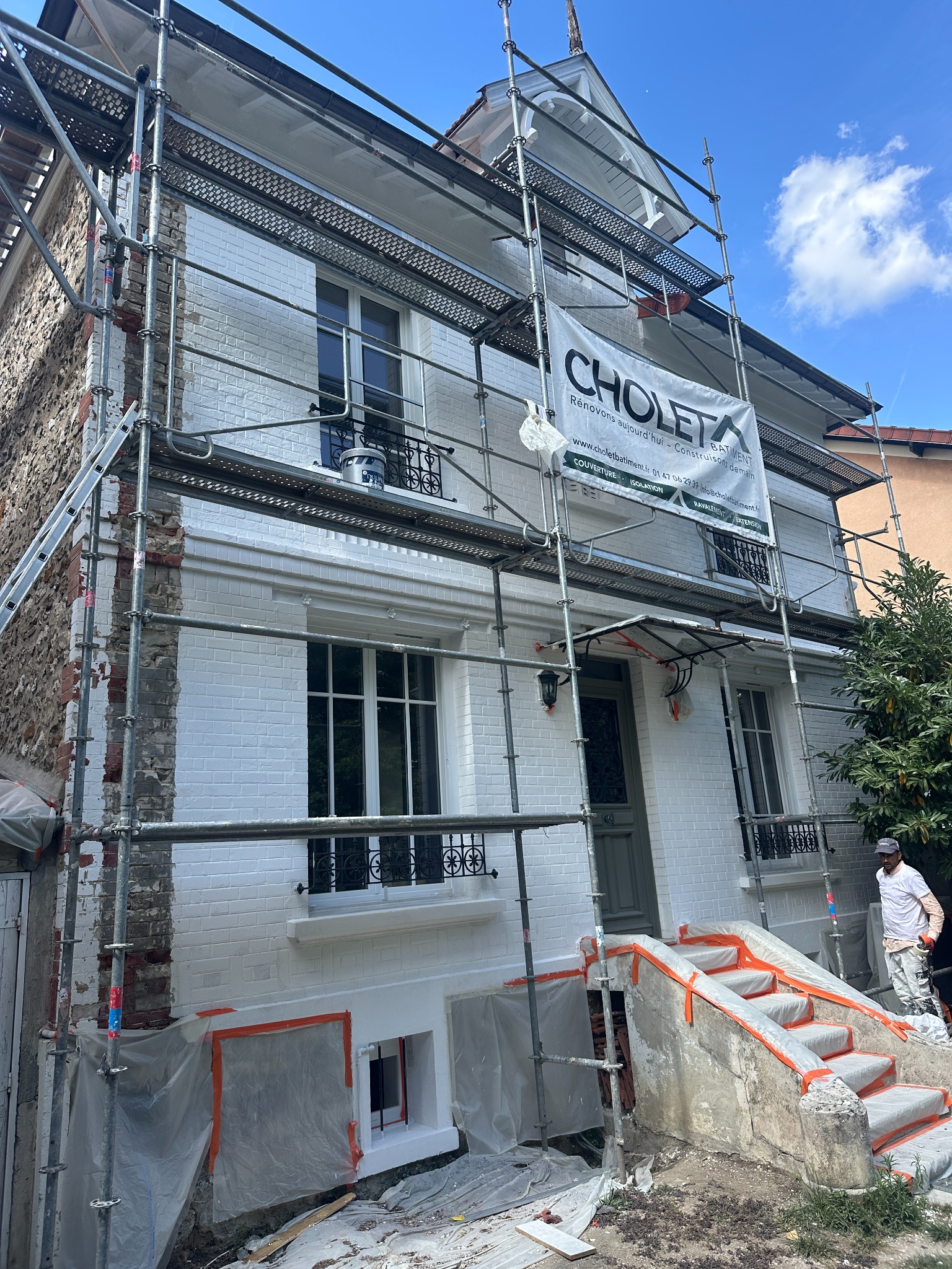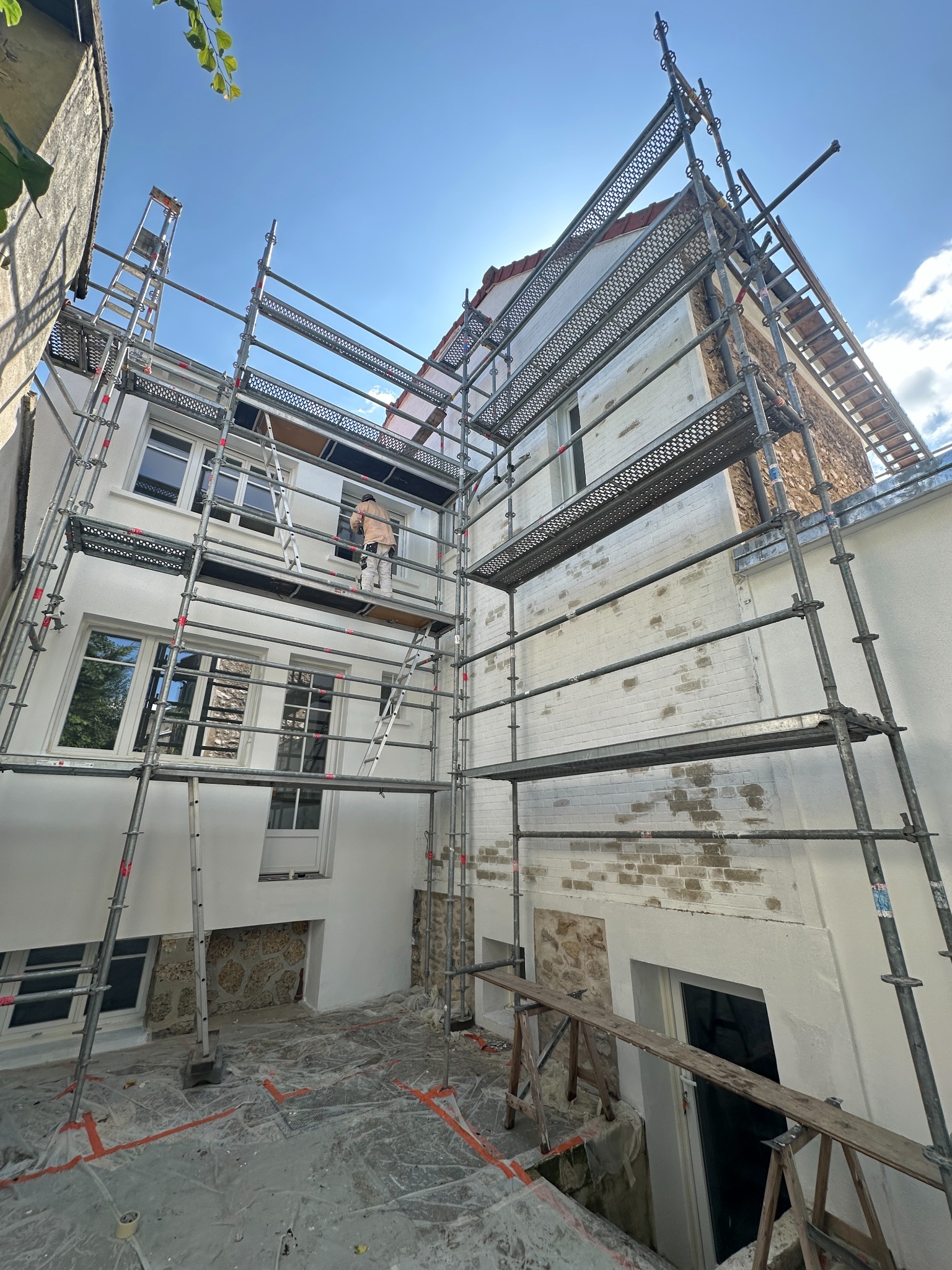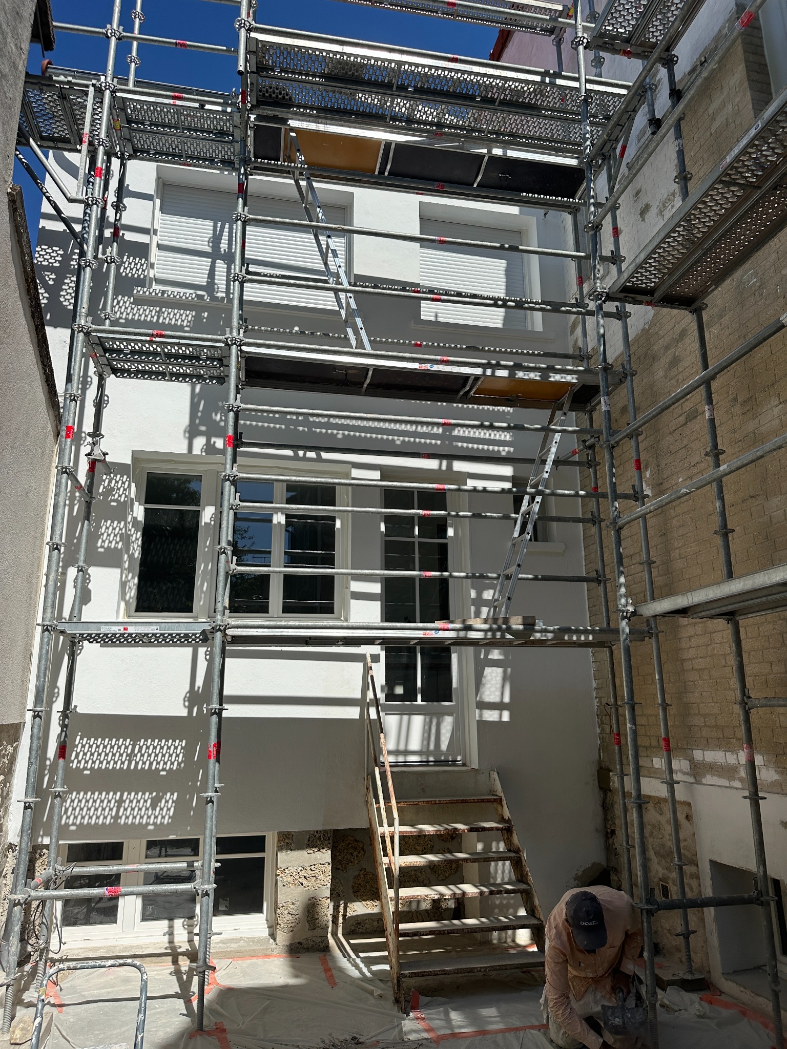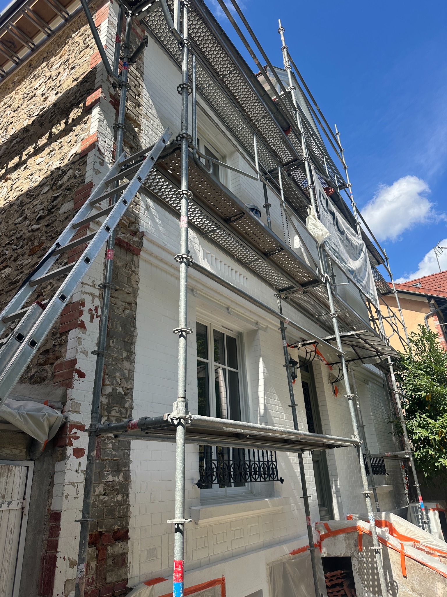 L’intervention s’est déroulée dans le strict respect des délais, avec un échafaudage sécurisé permettant un accès complet aux différentes façades.