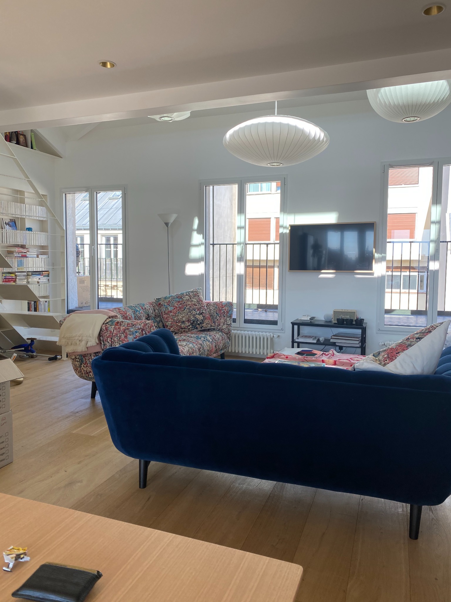 L’ensemble a été pensé pour allier confort moderne et charme parisien, en valorisant les hauteurs sous plafond et les vues dégagées sur les toits de la capitale.