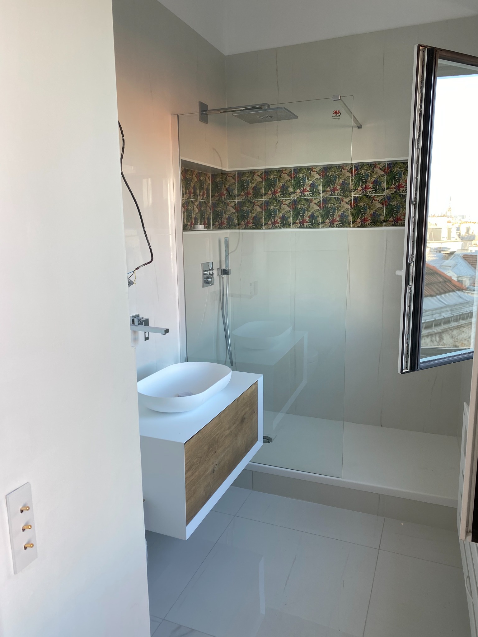 À l’intérieur, chaque espace a été optimisé : création d’un plancher sur mesure dans les combles, pose de fenêtres en double vitrage, isolation thermique haute performance, installation complète des réseaux électriques et plomberie, pose d’un parquet contrecollé, ainsi que la création d’une salle de bain contemporaine avec douche à l’italienne.